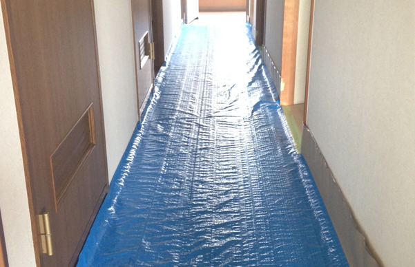 廊下など床に養生シートで保護し、壁や家具に傷つけないよう養生いたします。